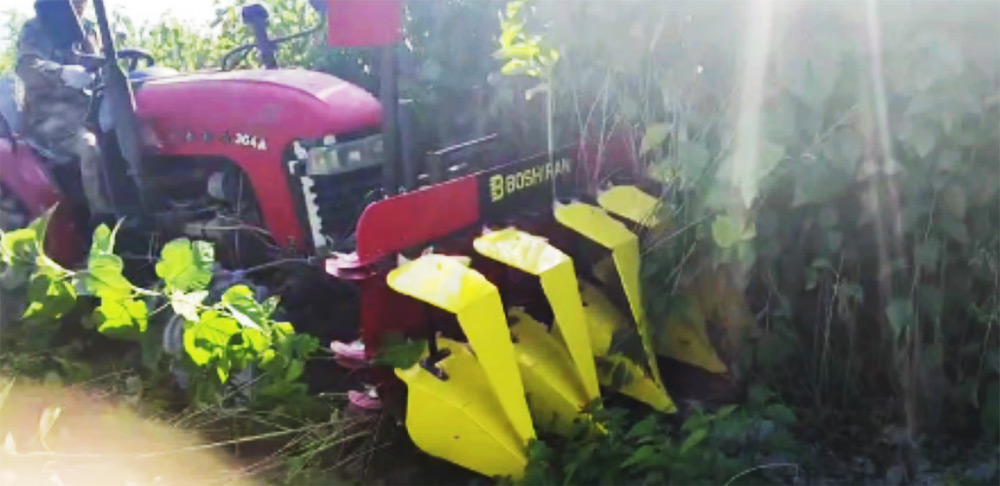 桑麻收割机结构紧凑、轻便灵活、使用可靠,操作简单、作业性能强、维护保养方便,三排链条输送不堵塞,输送均匀,铺放整齐,作业效率高。